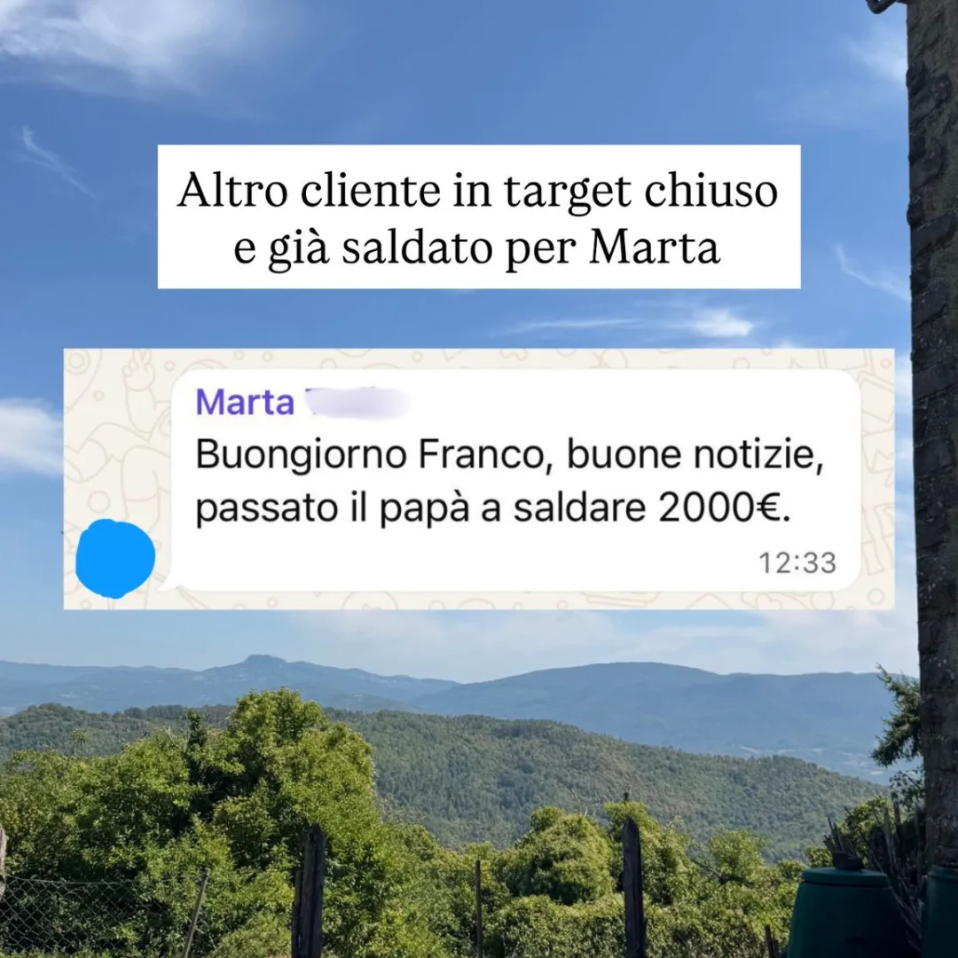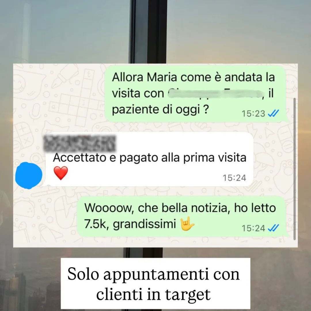 Ti portiamo SOLO clienti di SERIE A, cioè persone nella tua zona, che hanno disponibilità economica e che hanno un forte desiderio di risolvere il problema che il tuo lavoro promettere di risolvere. No curiosi, No perditempo